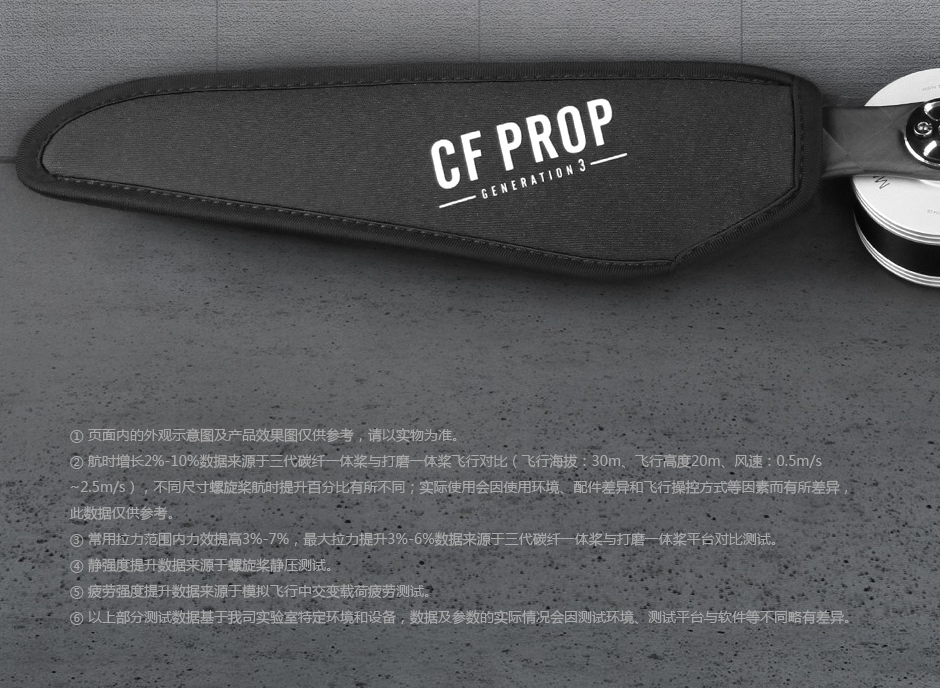 螺旋桨结构强度经过充分测试,请在推荐最大拉力范围内合理使用,若超过极限拉力将会损坏桨叶;请不要通过徒手弯曲等方式测试桨叶强度,此方式与实际飞行时的受力差距较大,同样可能导致桨叶损坏。
