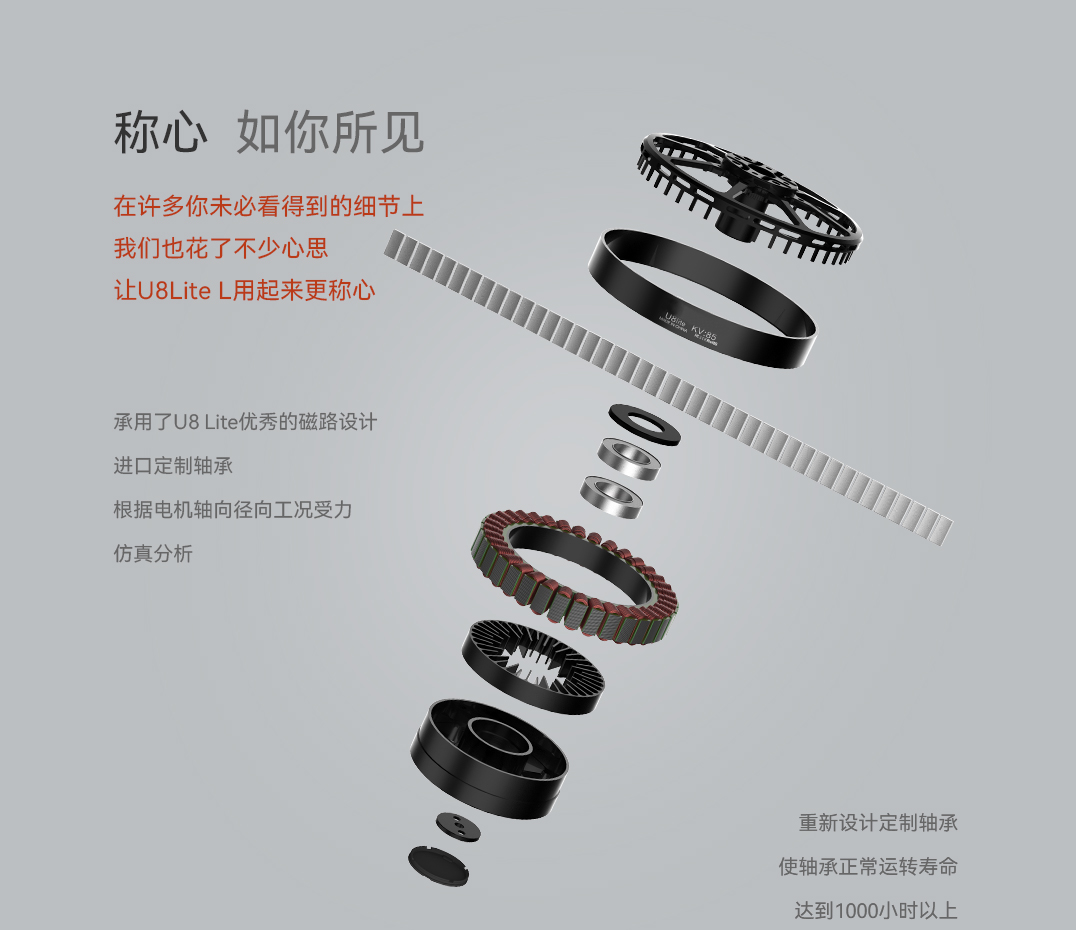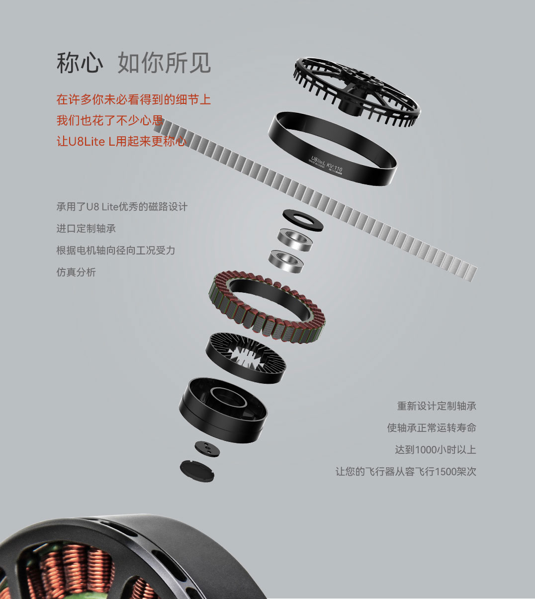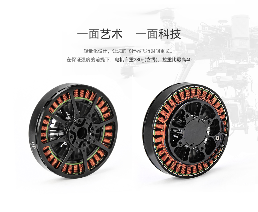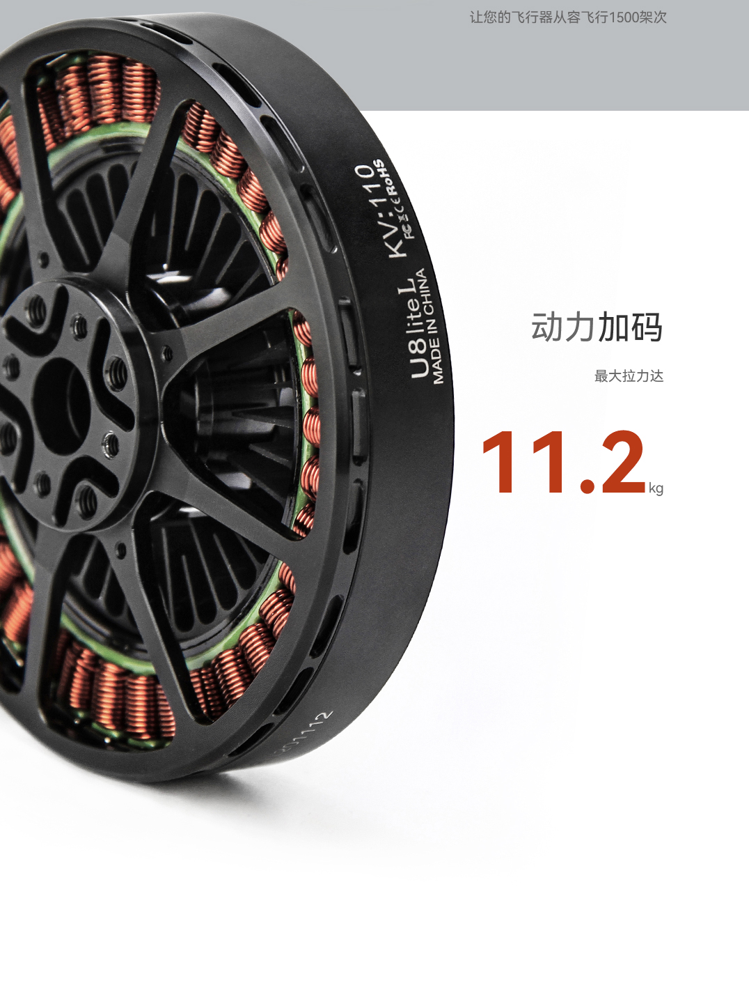 T-MOTOR U8 Lite L长航时多旋翼无人机直流无刷电机,有KV95/KV110两个KV,在U8 Lite用料基础上,采用更加轻量化的设计,在保证电机强度的前提下,电机自重仅280g,最大拉力11.2kg,拉重比高达40!主要应用于监视、巡航、测绘等长航时应用领域。