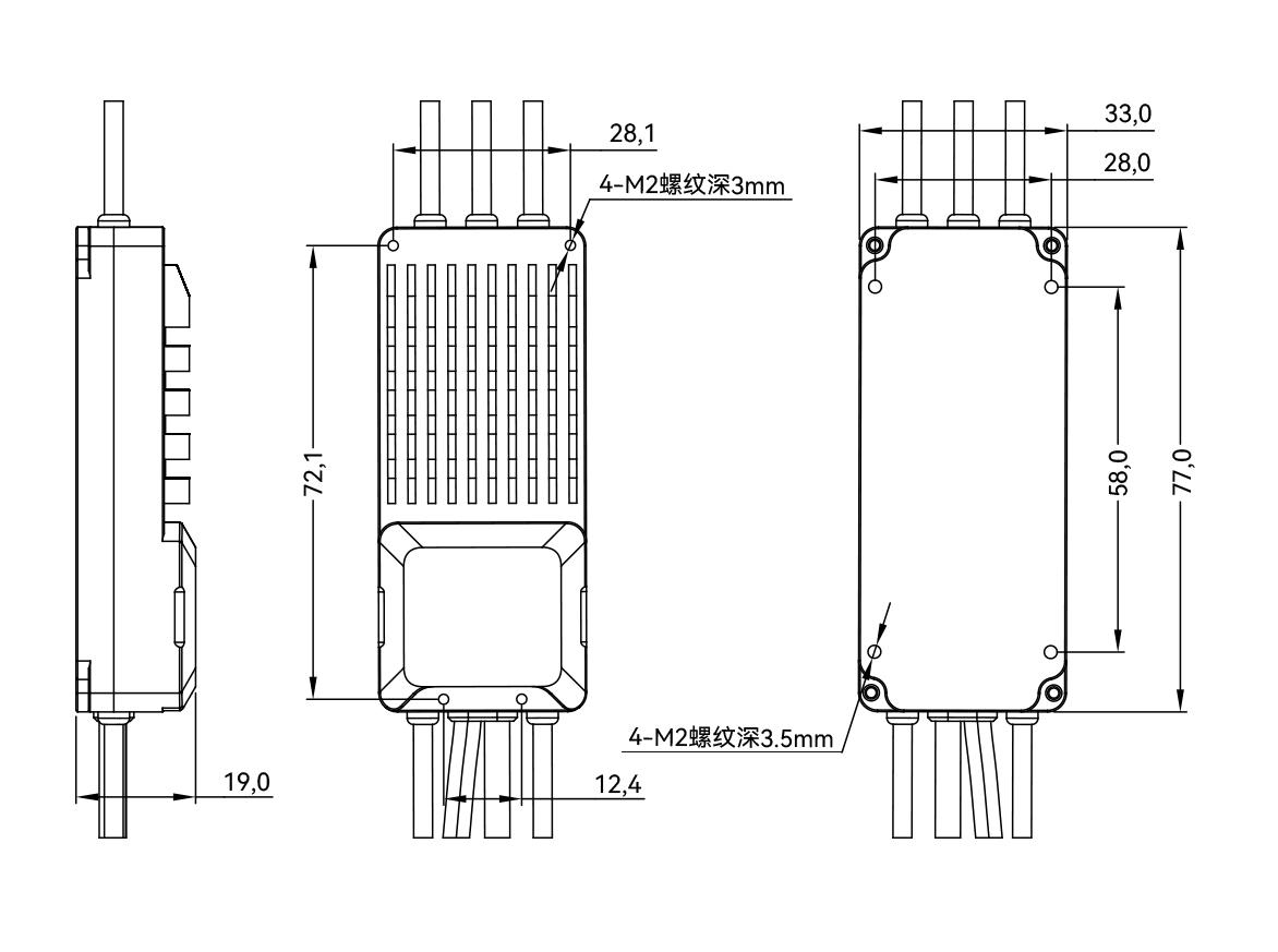 电调外观尺寸 | 77*33*19mm (长*宽*高) | 信号线 | 屏蔽线-黑色-OD4.2-5C-300mm -JP-3P*2-黑空白-绿黄灰 |