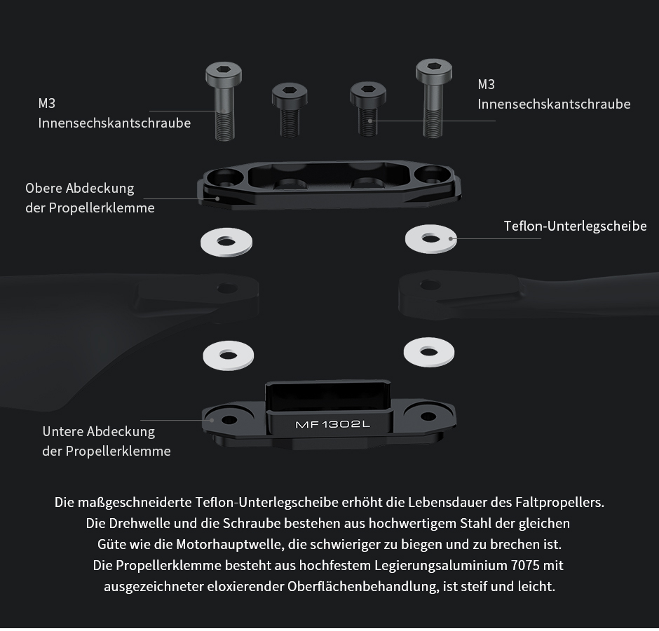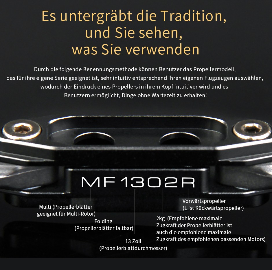 Modell | MF1302 | Gruppierungen der Eigenschaften | Kohlefaserpropeller |