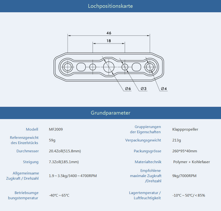 Modell | MF2009 | Gruppierungen der Eigenschaften | Kohlefaserpropeller |