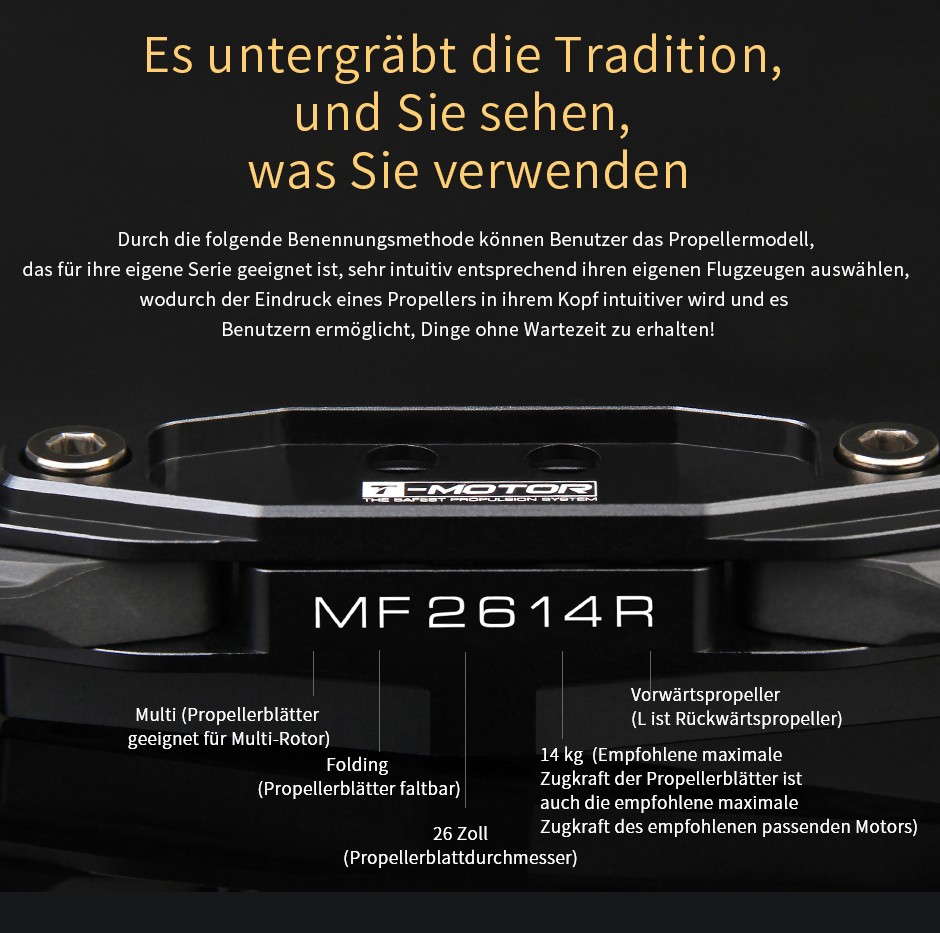 | Modell | MF2614 | Gruppierungen der Eigenschaften | Kohlefaserpropeller |