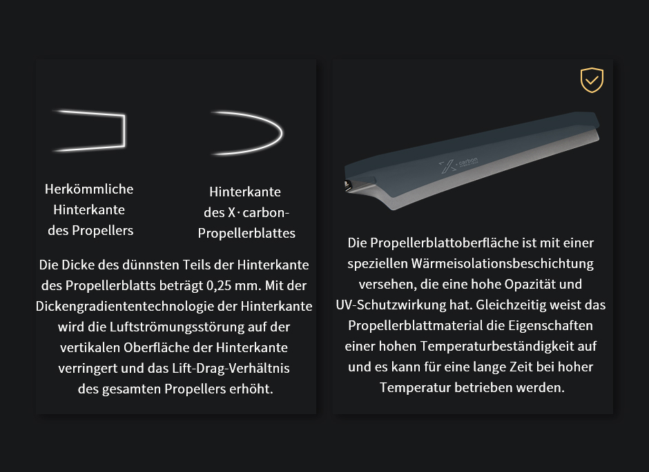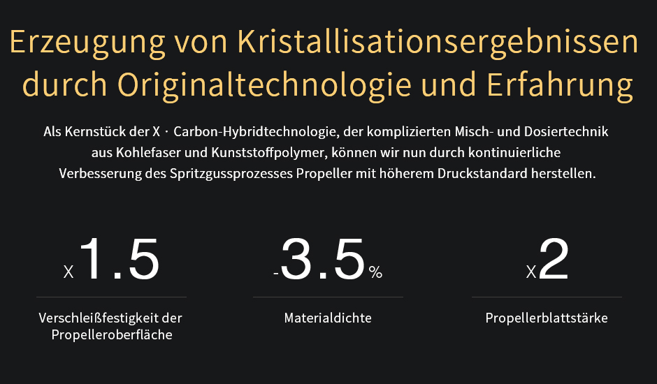 ( 3 ) Wenn der Polymerpropeller während des Gebrauchs herunterfällt oder von dem entsprechenden Aufprall getroffen wird, führt dies dazu, dass sich der Propeller verformt oder reißt, ersetzen Sie den Propeller bitte rechtzeitig durch einen neuen.