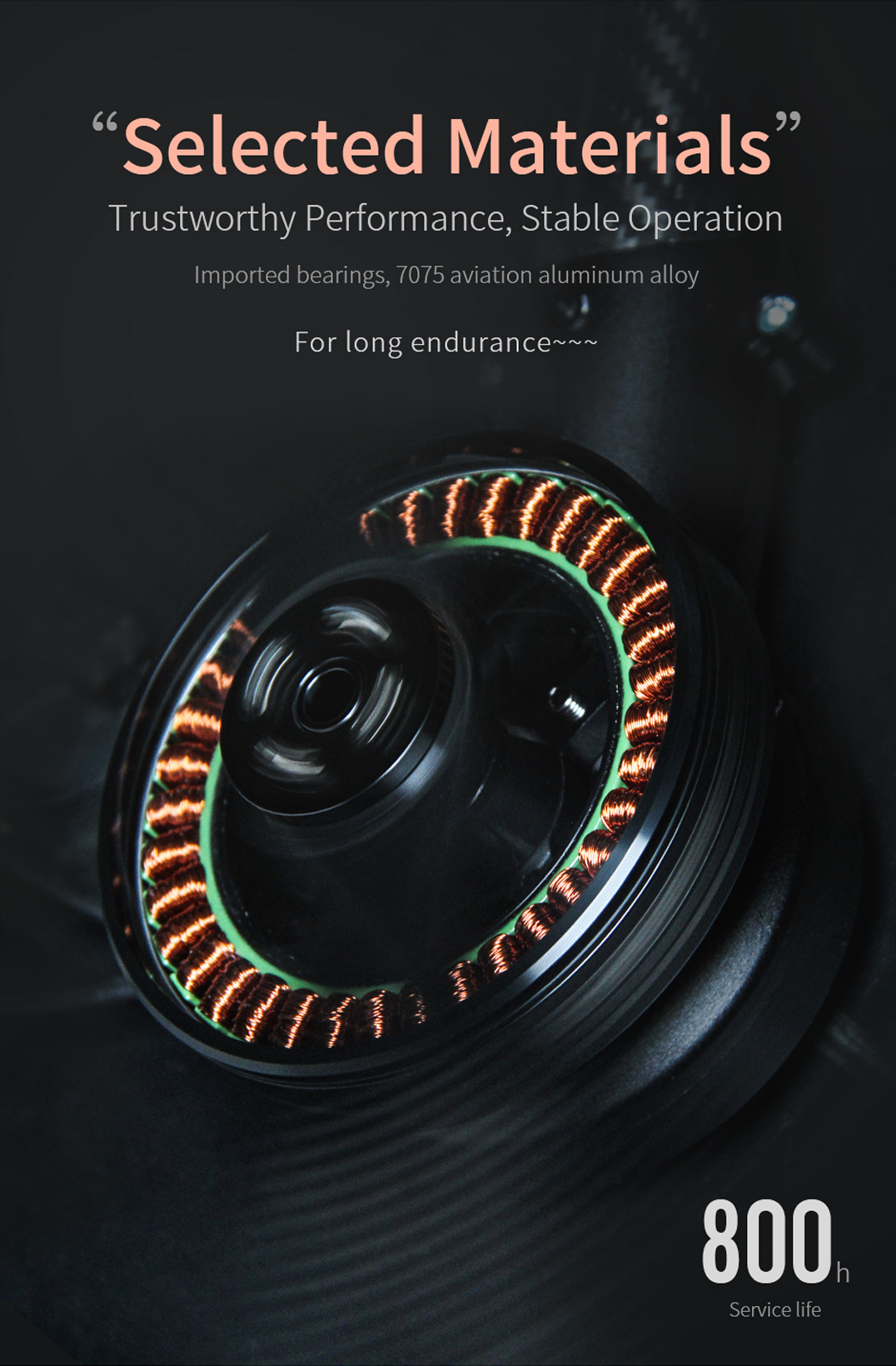 Imported bearings and high strength 7075 aviation aluminium alloy for long motor endurance.