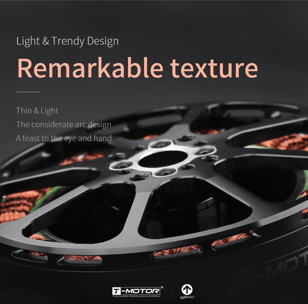 T-MOTOR Antigravity MN8017 KV120 Brushless Motor sets a new standard in UAV performance, combining ultra-light weight with exceptional power. With a maximum thrust of 16.8kg and a high power ratio of 37, this motor is designed to handle the most demanding multi-rotor applications with ease. Whether you're flying large drones for industrial surveys, heavy-lift operations, or high-end cinematography, the MN8017 ensures powerful, stable, and efficient performance.