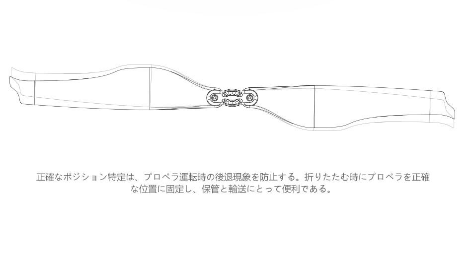 (6)腐食性ガスや有害な環境、および0~40℃以下の温度範囲と80%以上の湿度範囲を選けてプロペラを保管してください。特に長期保管時、保管環境にご注意ください。