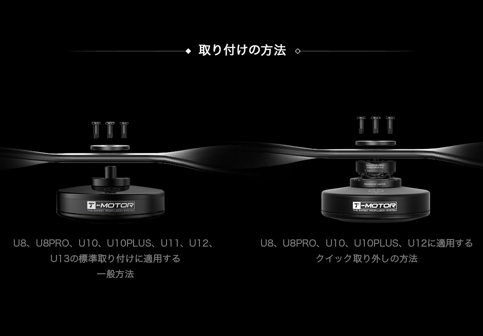 (1)プロペラの型番の後るに [L」が付いている場合、使用時、プロペラとモ-タを時計回り方向に回転する(見下るす);