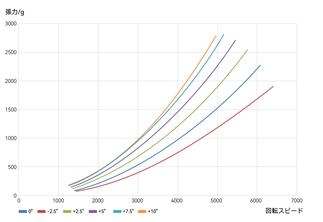 結論:位置決めブロックの角度(ピッチ)が増加するにつれ、プロペラはより 高い流入速度で力効率が高くなる