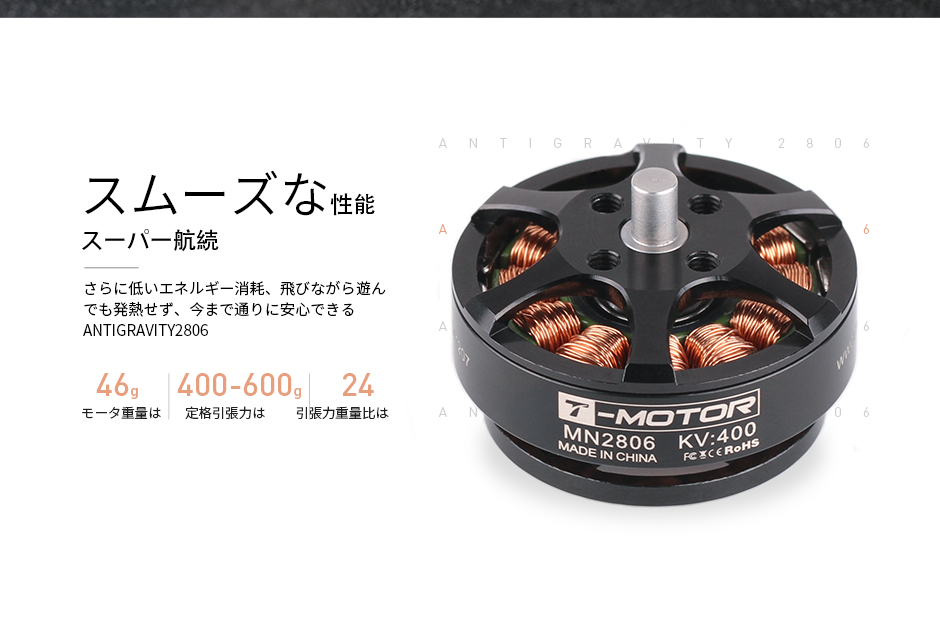 最大出力(180s) | 187W/180s持続 | モータ重量(g) | ケーブル込み重量46g |
