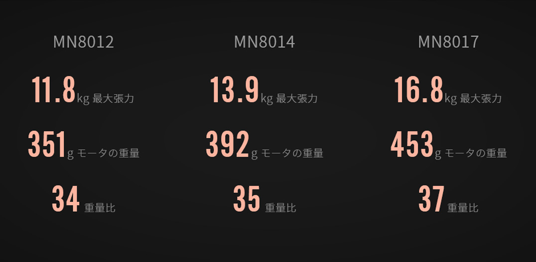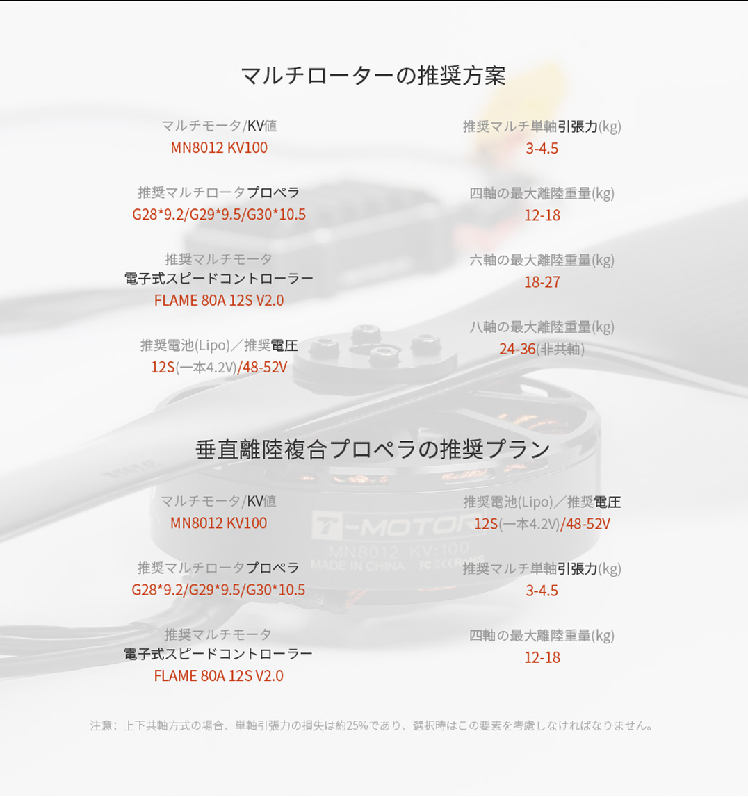 | KV値 | 100 | 運転規定電圧(Lipo) | 12S |