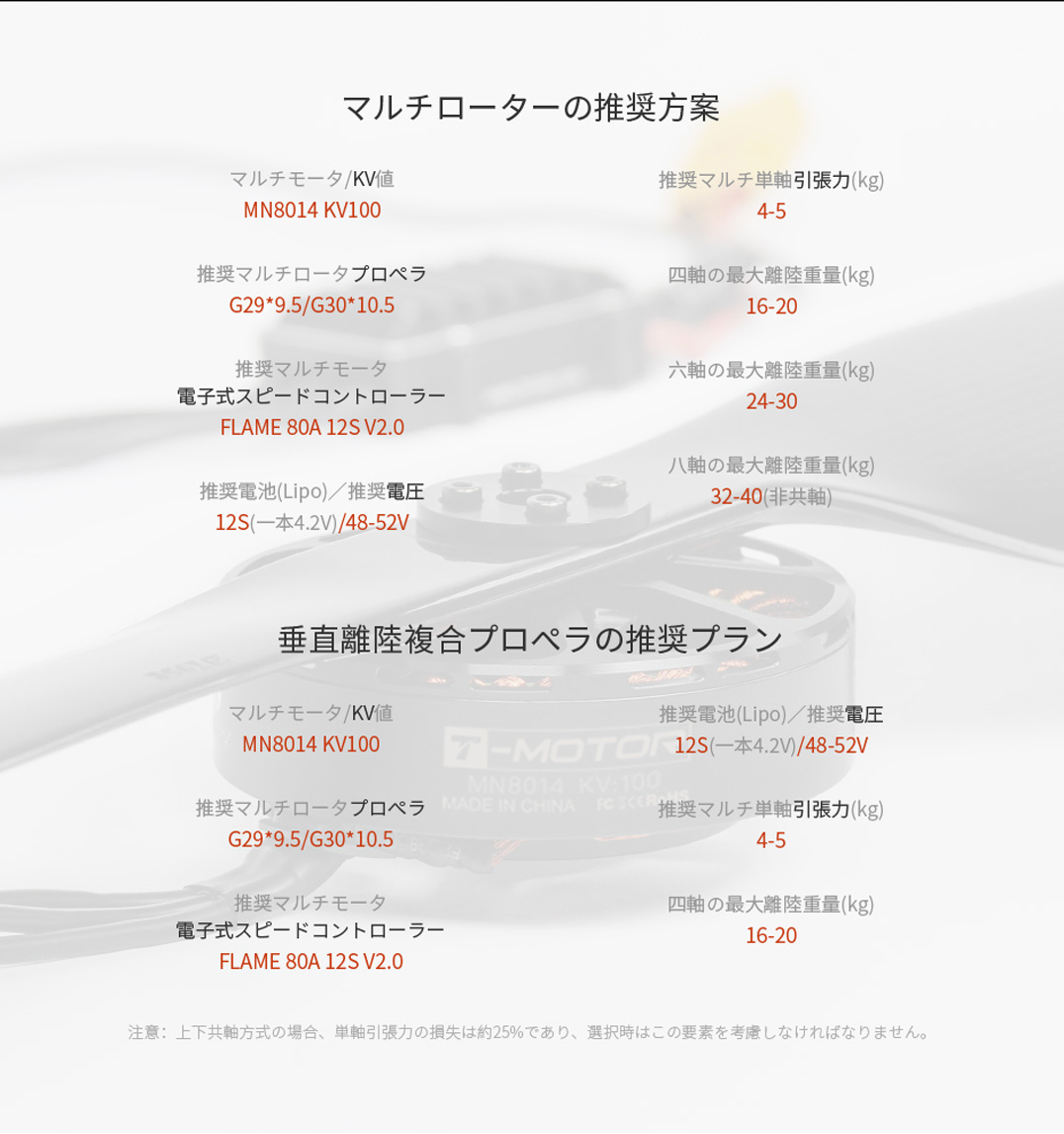 KV値 | 100 | 運転規定電圧(Lipo) | 12S |