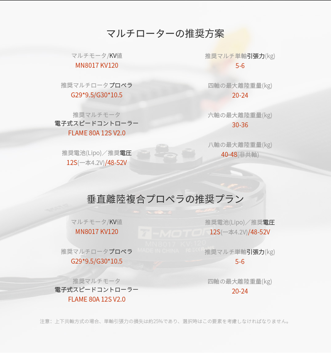 KV値 | 120 | 運転規定電圧(Lipo) | 12S |