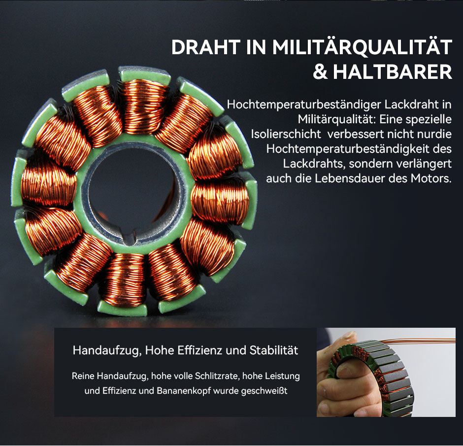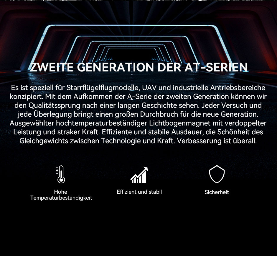 | Hinweis: Die Motortemperatur ist die Temperatur nach 3 Minuten Motorbetrieb bei 100% Drossel. (Die oben genannten Daten wurden alle auf der Testplattform 2017 gemessen und können nicht horizontal mit alter Daten von anderen Modellen verglichen werden, und dienen nur als Referenz.) | ||||||||||