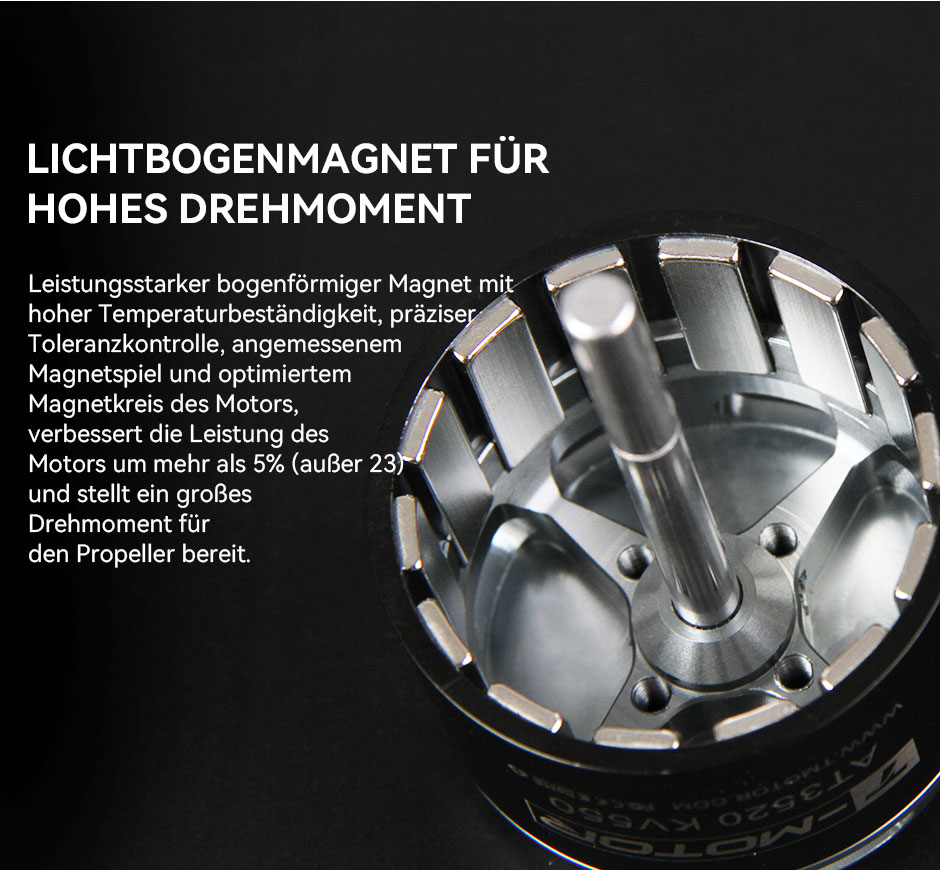 | AT3520 langer Schaft KV550 | APC 13*6.5 | 40% | 22.49 | 4.96 | 111.61 | 4834 | 0.162 | 912 | 8.18 | 41 (Umgebungs- temperatur) |