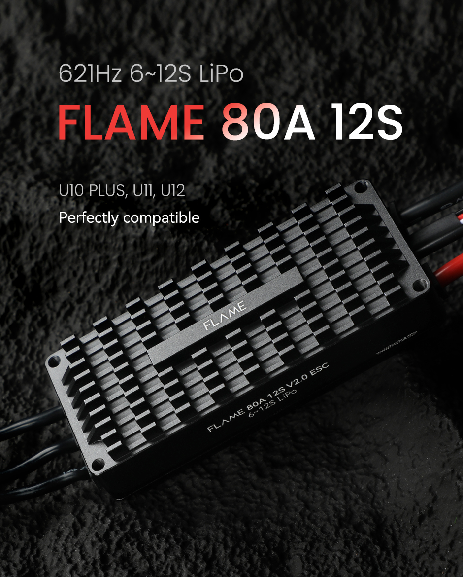 T-MOTOR FLAME 80A 12S ESC offers reliable power for multi-rotors with 80A continuous and 120A peak current (10s). Compatible with U12 motors, it supports 6-12S LiPo and features efficient heat dissipation with a durable machined aluminum case. With an IP56 waterproof and dustproof rating, it’s built for tough conditions. Protection features include start-up, overload, motor lock-up, and throttle signal loss safeguards, ensuring stable and safe performance.