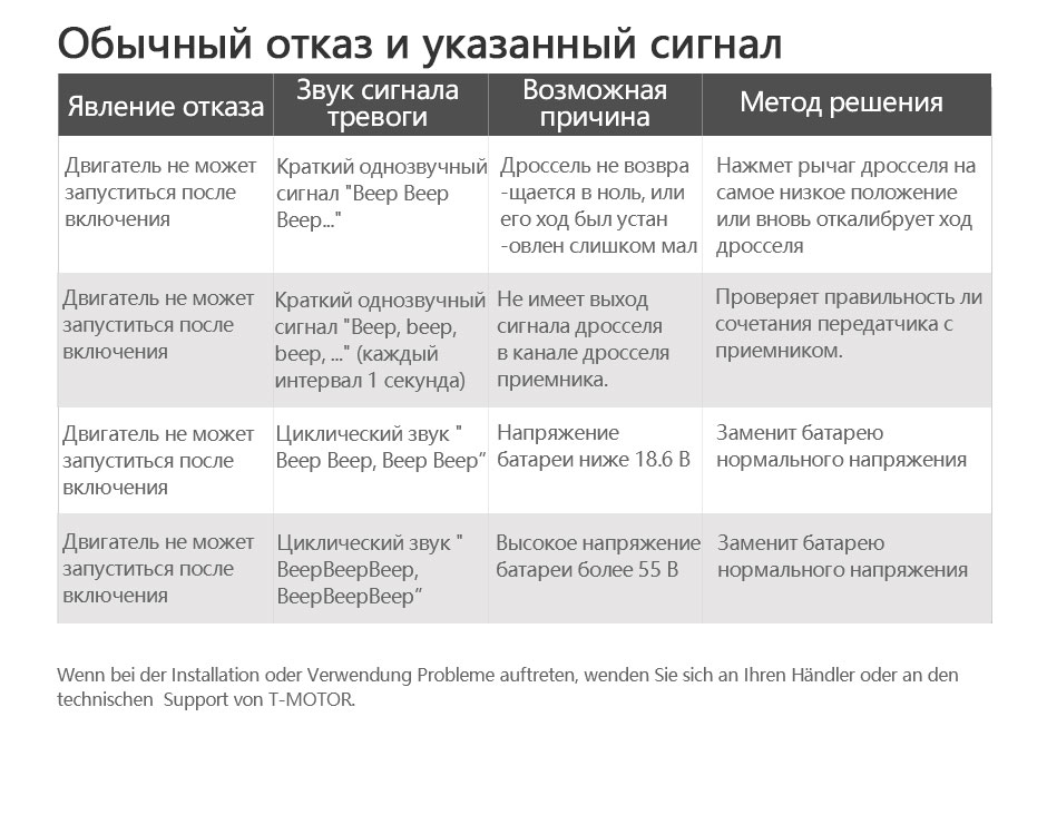 Перед использованием этого продукта убедитесь, что все вышеперечисленные элементы включены в упаковку продукта. Если чего-то не хватает, пожалуйста, вовремя свяжитесь с онлайн-службой поддержки клиентов или оставьте нам сообщение: onlinesales@tmotor.com.